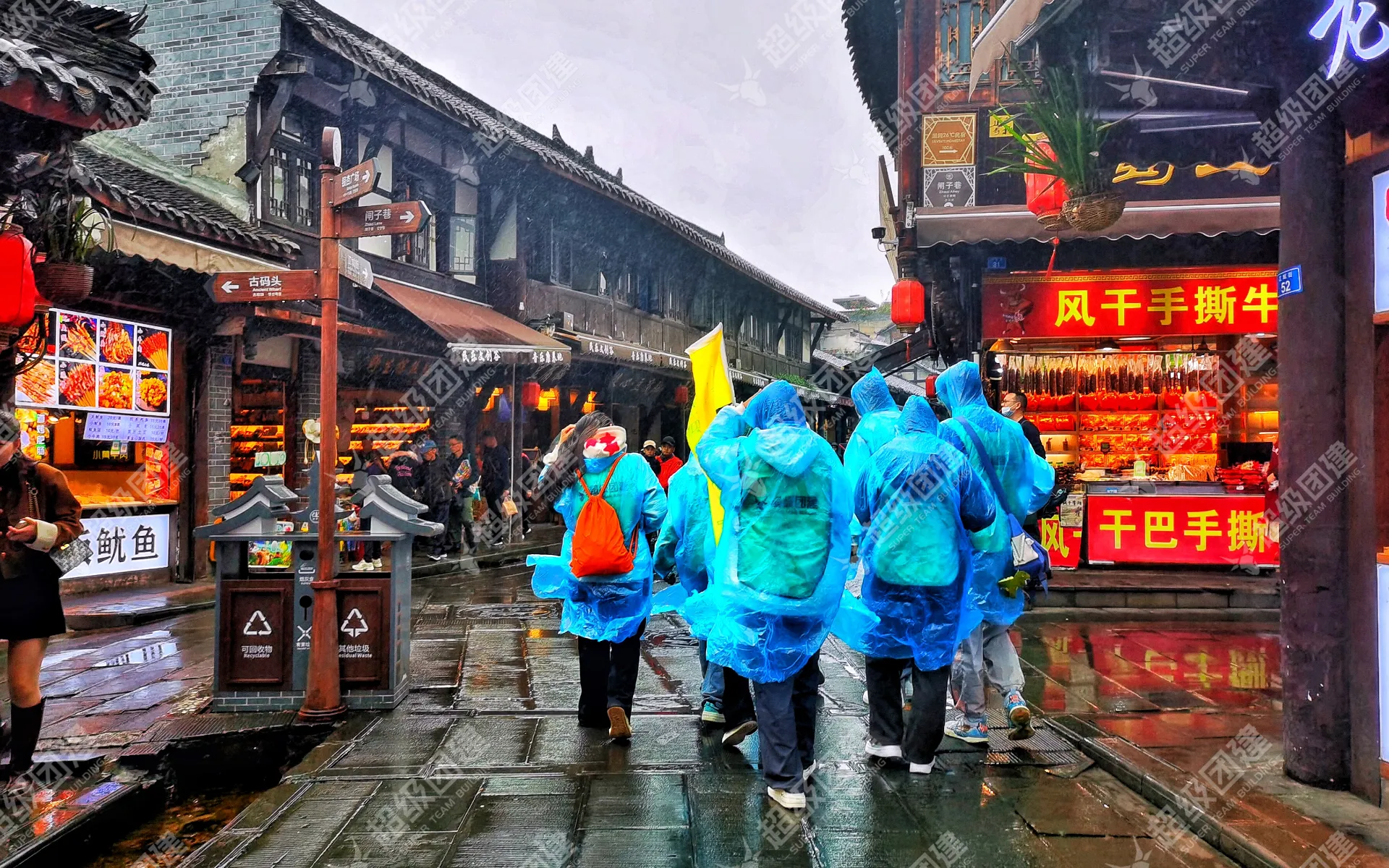 同学们身披雨衣,手持地图,穿梭在历史悠久的古镇巷陌之间,智慧与勇气并举,团队精神与个人能力相融。