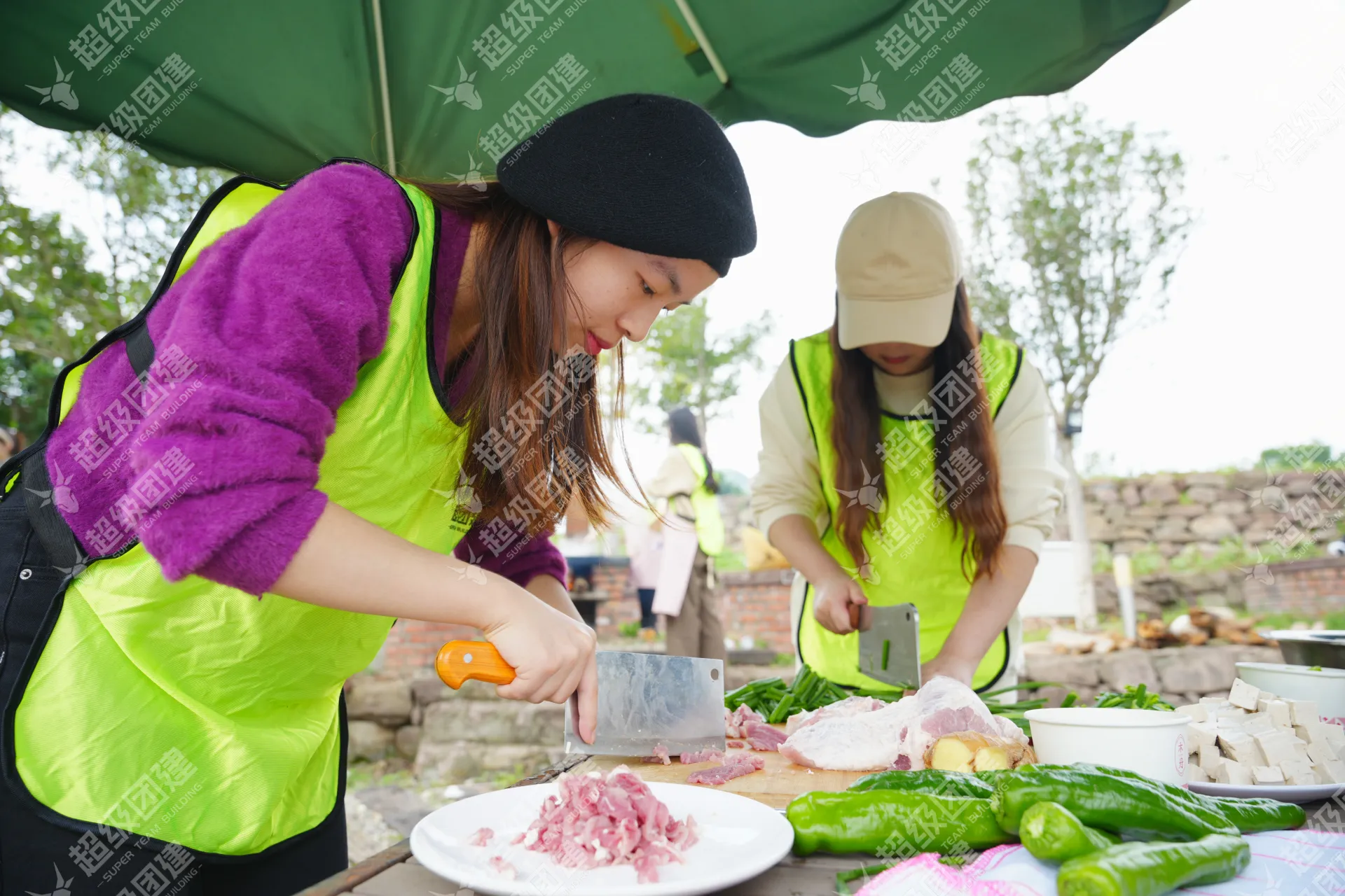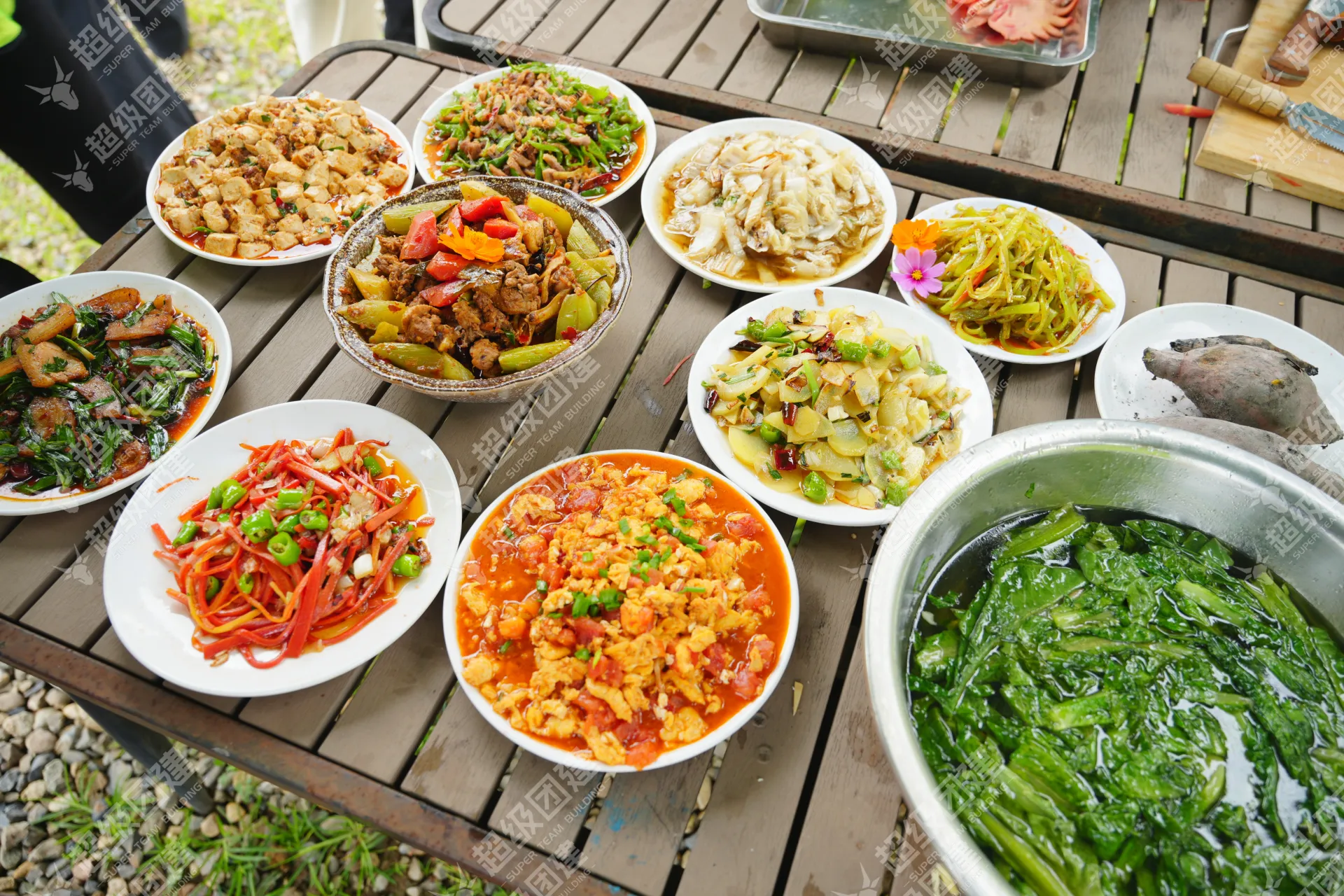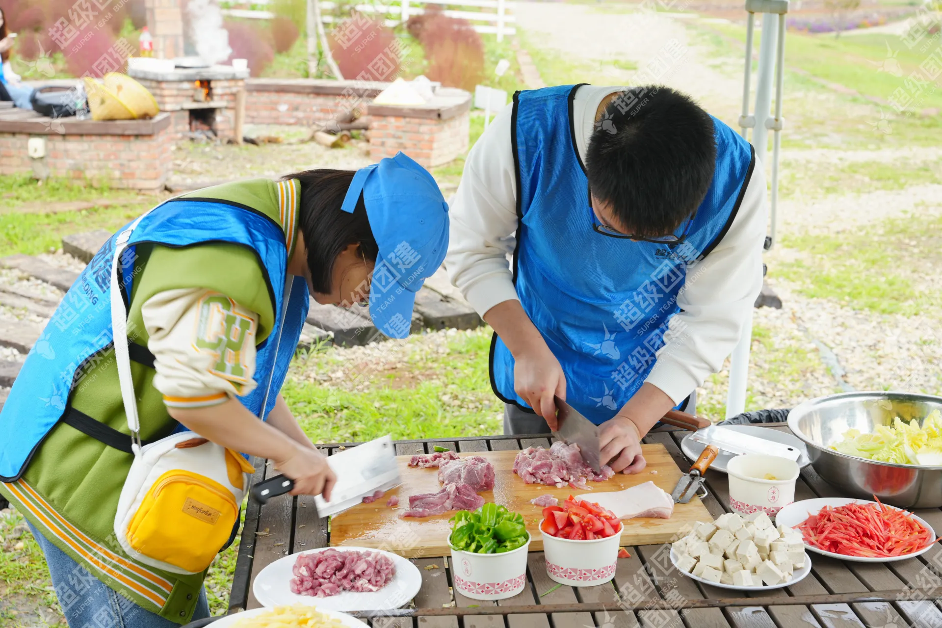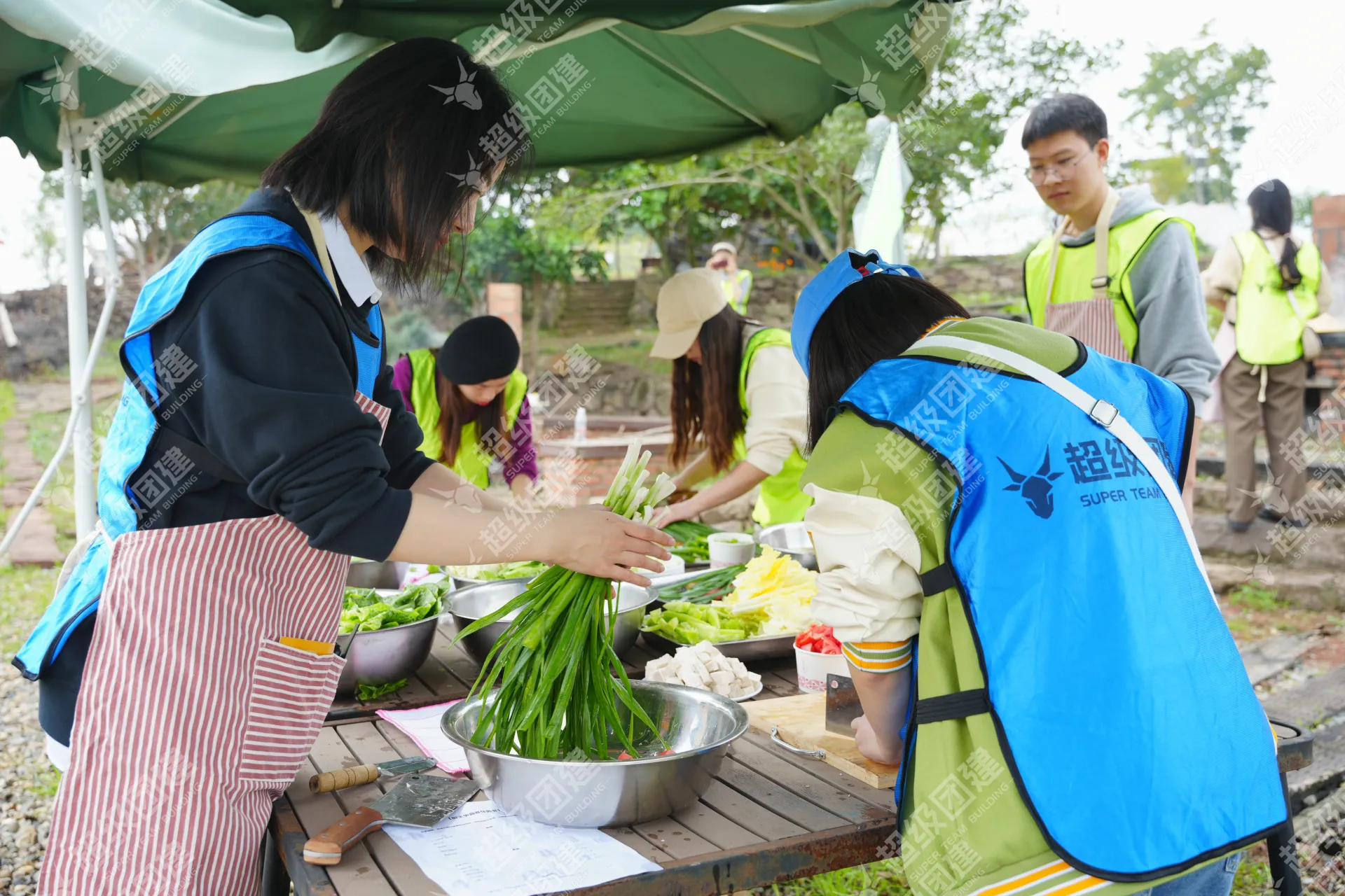 游戏过后,采摘新鲜蔬菜,各组厨王大神分工合作,开始制作美味佳肴
